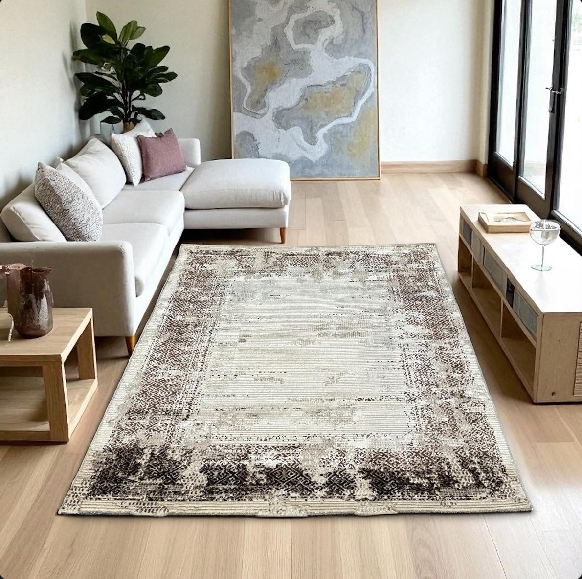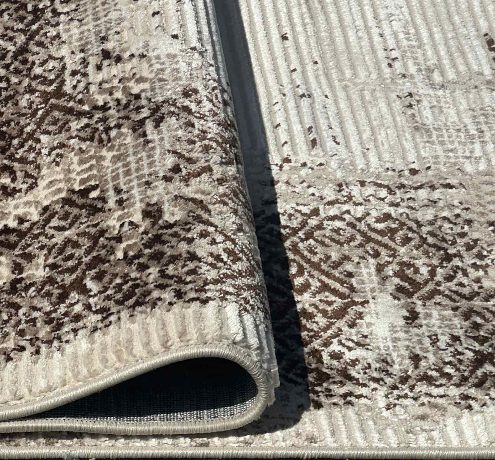Κομψό χαλί σε γήινους τόνους με μπεζ και καφέ αποχρώσεις, ιδανικό για να προσθέσει ζεστασιά και στυλ σε κάθε χώρο. Το ανάγλυφο σχέδιό του δίνει μοναδική υφή και πολυτέλεια, ενώ παραμένει πρακτικό για καθημερινή χρήση.