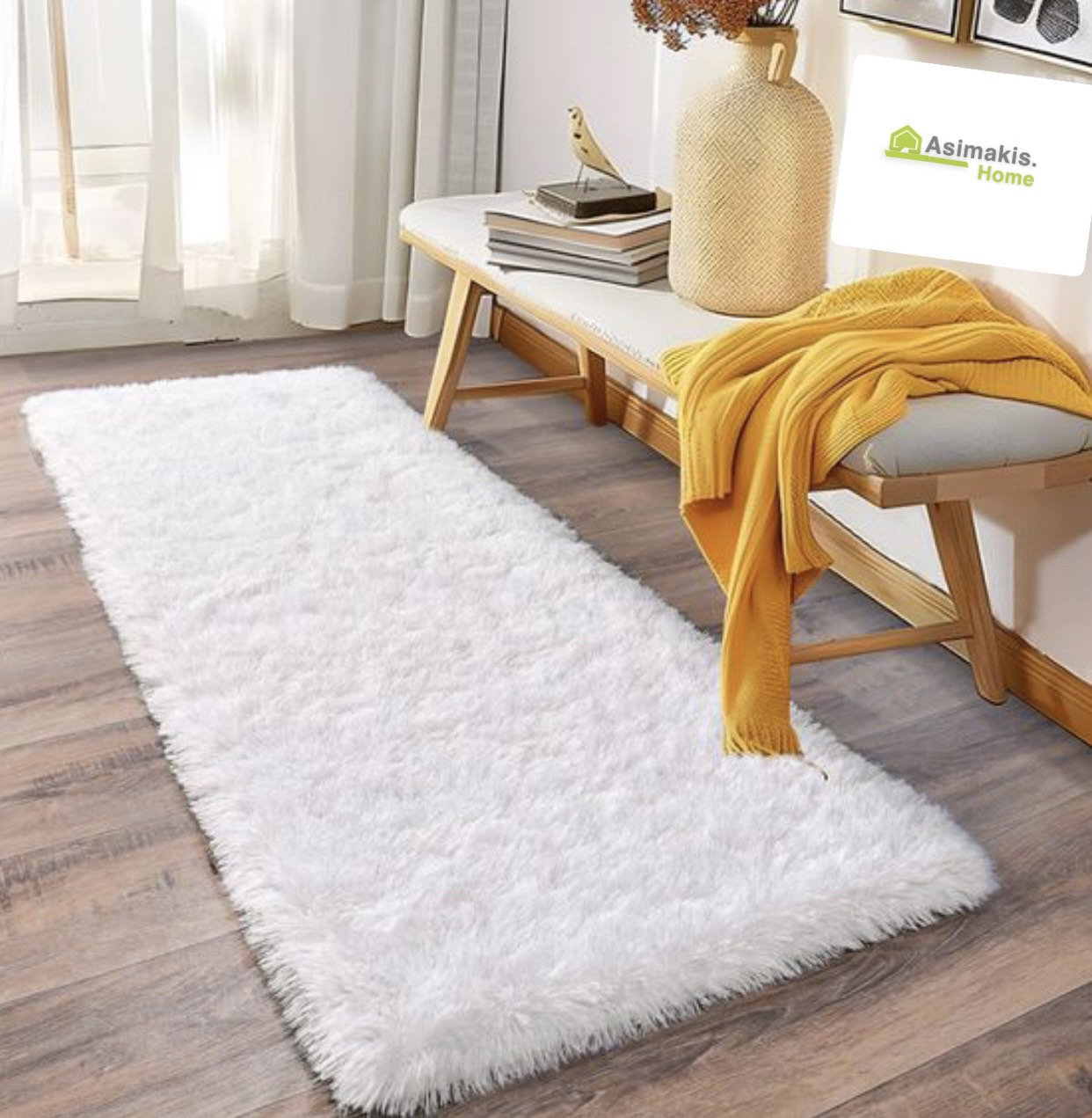 Διάδρομος shaggy γούνινος χρώμα λευκό
