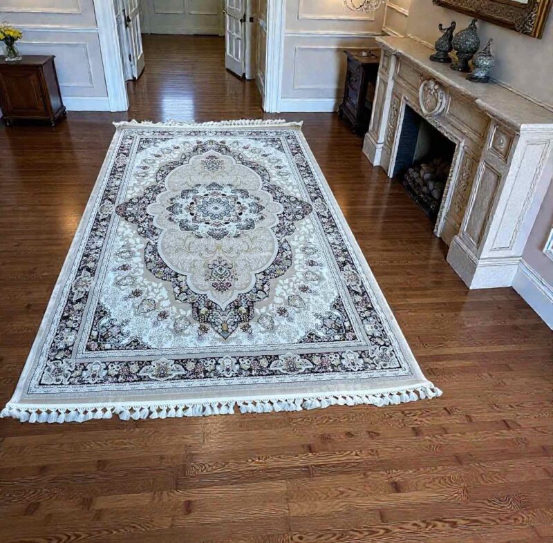 Ένα διαχρονικό κλασικό χαλί που αποπνέει κομψότητα και πολυτέλεια, ιδανικό για σαλόνια και χώρους που θέλουν να ξεχωρίζουν. Το πλούσιο κεντρικό μοτίβο με έμπνευση από την παραδοσιακή ανατολίτικη αισθητική δημιουργεί ένα εντυπωσιακό αποτέλεσμα, ενώ το περιμετρικό σχέδιο ολοκληρώνει αρμονικά τη σύνθεση.