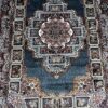 Το κύριο χρώμα του είναι το σκούρο μπλε (navy blue), μια κομψή και διαχρονική απόχρωση που προσδίδει βάθος και χαρακτήρα στον χώρο. Το περίτεχνο κεντρικό μετάλλιο πλαισιώνεται από αποχρώσεις εκρού, μπεζ, μπορντό, καφέ και διακριτικές χρυσές λεπτομέρειες, δημιουργώντας ένα πλούσιο και ισορροπημένο αποτέλεσμα. Το διακοσμητικό πλαίσιο περιμετρικά ενισχύει την αρχοντική αισθητική του χαλιού.