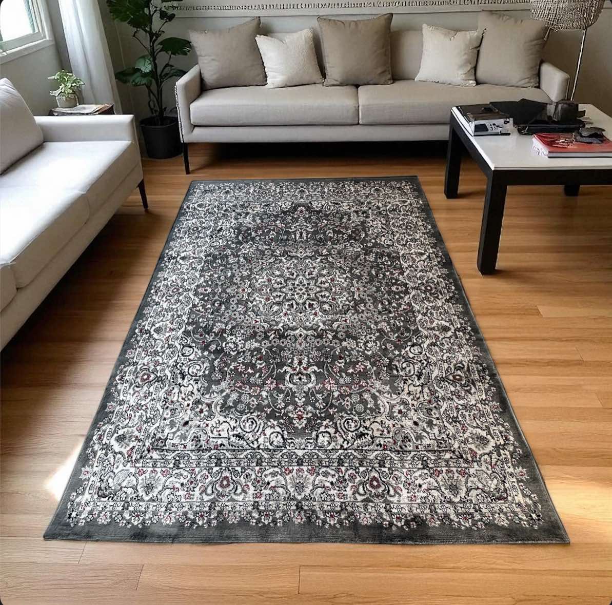 Ανανεώστε τον χώρο σας με αυτό το κομψό χαλί σε διαστάσεις 200×290 εκ.. Ο αρμονικός συνδυασμός γκρι με διακριτικές μπορντό λεπτομέρειες και το παραδοσιακό σχέδιο χαρίζουν πολυτέλεια και ζεστασιά, καθιστώντας το ιδανικό για μεγάλους χώρους όπως σαλόνια και τραπεζαρίες.