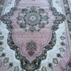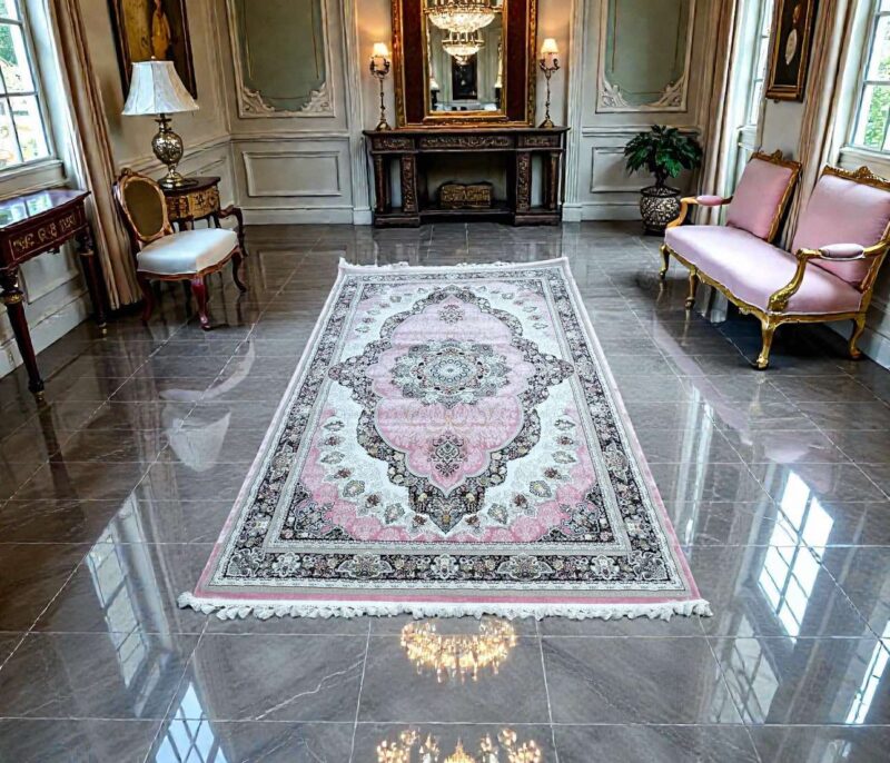 Το χαλί ξεχωρίζει για το αρμονικό του σχέδιο με κυρίαρχες ροζ αποχρώσεις, που δένουν μοναδικά με το εκρού φόντο και τις σκούρες λεπτομέρειες. Το πλούσιο κεντρικό μοτίβο σε συνδυασμό με τα κομψά κρόσσια στο τελείωμα δημιουργούν ένα αποτέλεσμα υψηλής αισθητικής.