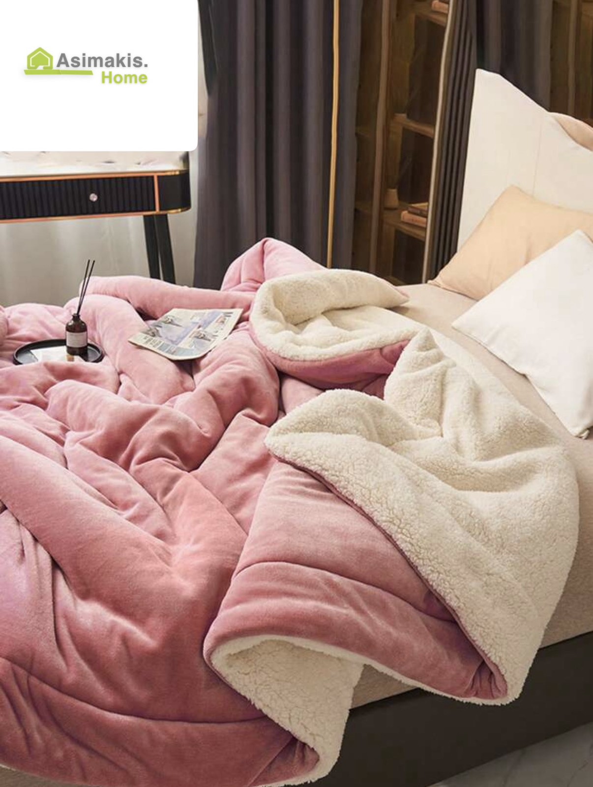 Η εξωτερική επιφάνεια σε κομψό ροζ βελούδινο ύφασμα προσφέρει μοναδική αίσθηση απαλότητας, ενώ το εσωτερικό με παχιά λευκή γούνα sherpa χαρίζει υπέρτατη θαλπωρή και άνεση ακόμα και στις πιο κρύες νύχτες.