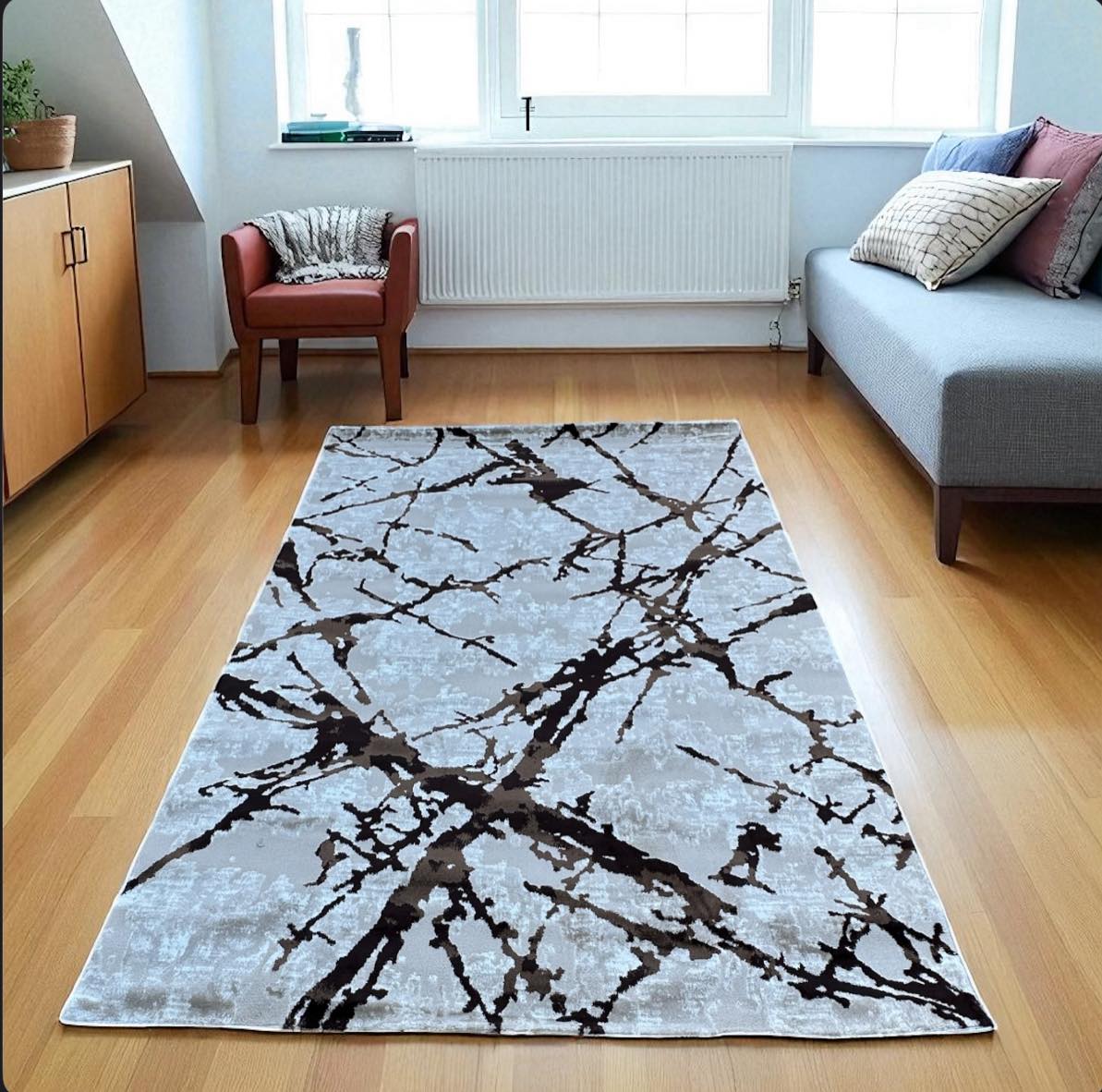 Ανανεώστε τον χώρο σας με αυτό το κομψό μοντέρνο χαλί, που συνδυάζει διακριτική πολυτέλεια και πρακτικότητα. Η εκρού βάση με καφέ λεπτομέρειες δημιουργεί ένα μοναδικό μοτίβο που χαρίζει ζεστασιά και στυλ σε κάθε μεγάλο χώρο.