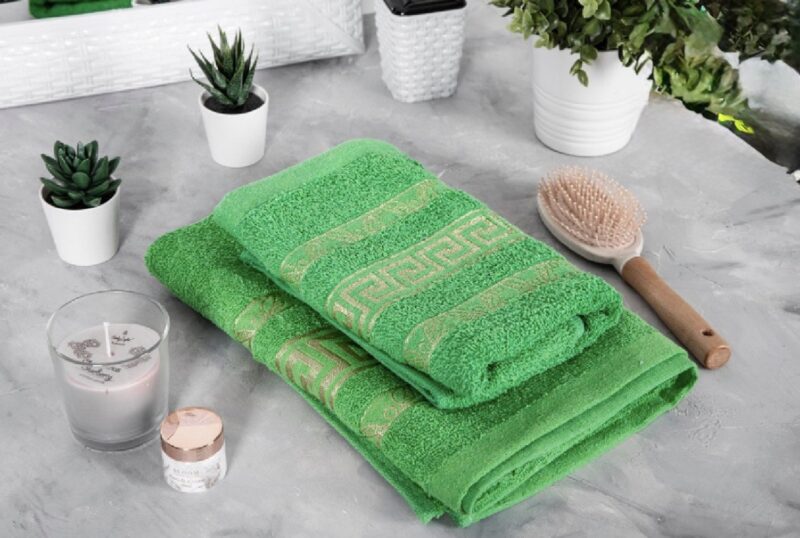 Πετσέτα Προσώπου 100×46εκ. – Πράσινη με Χρυσές Λεπτομέρειες