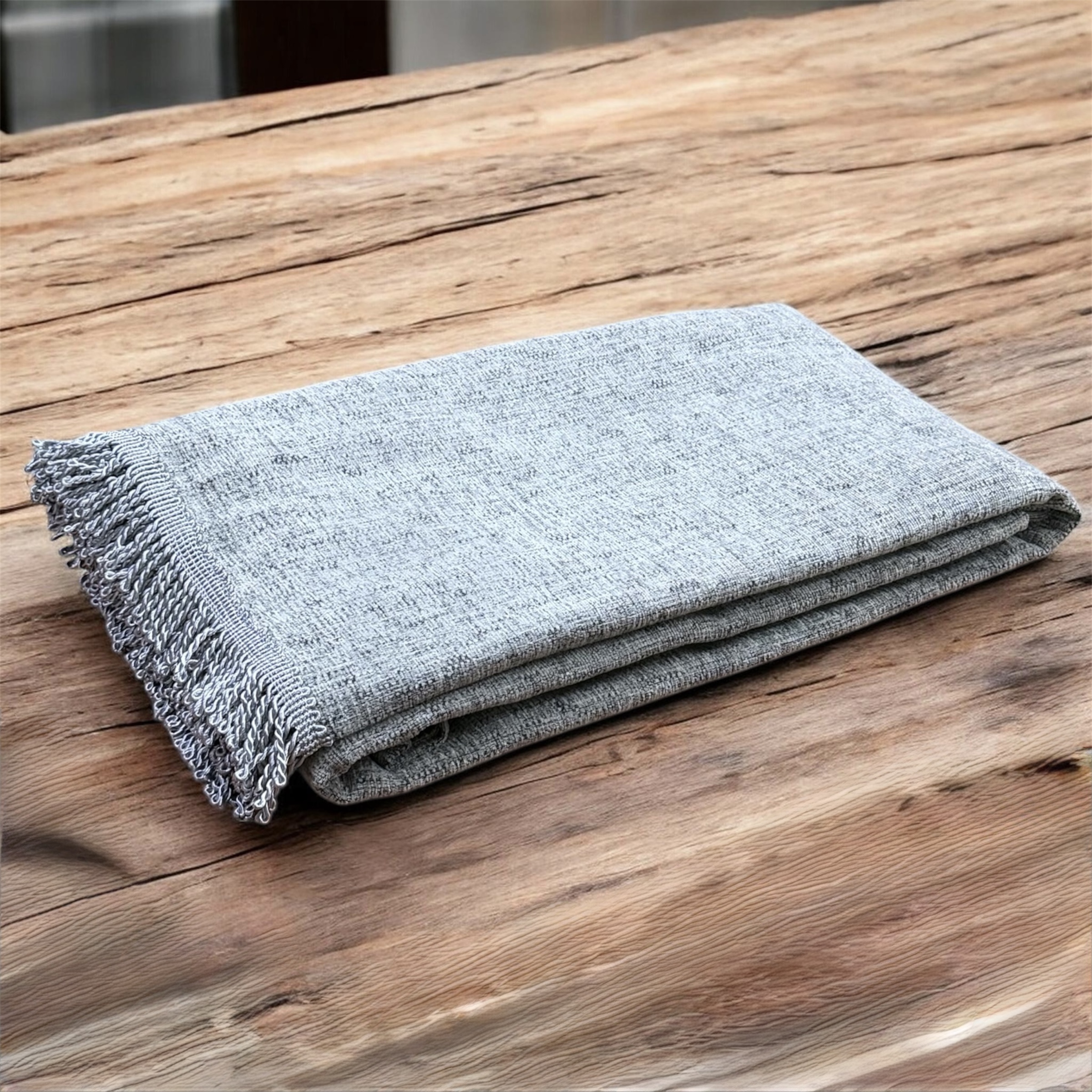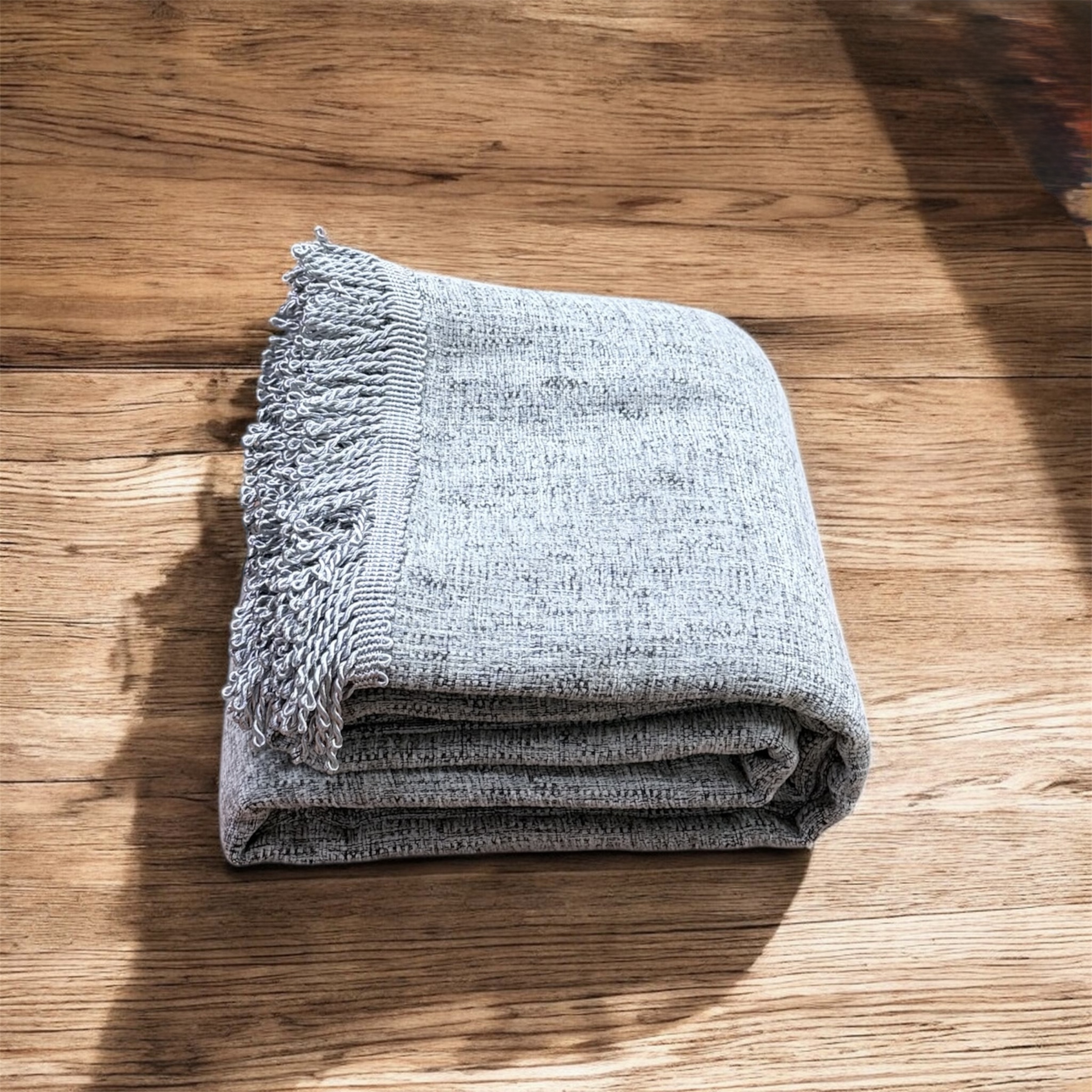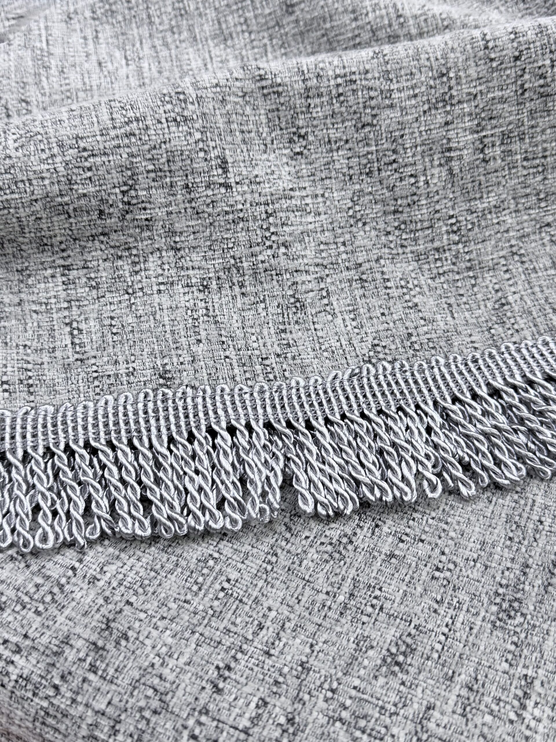 Ανανεώστε τον χώρο σας με αυτό το κομψό ριχτάρι καναπέ σε μοντέρνα γκρι απόχρωση. Το ύφασμα σε μεσαίο προς σκούρο γκρι χρώμα συνδυάζεται αρμονικά με τα σκούρα γκρι κρόσια, τα οποία είναι διακοσμημένα με γυαλιστερή κλωστή, προσθέτοντας μια διακριτική πινελιά πολυτέλειας και κομψότητας.