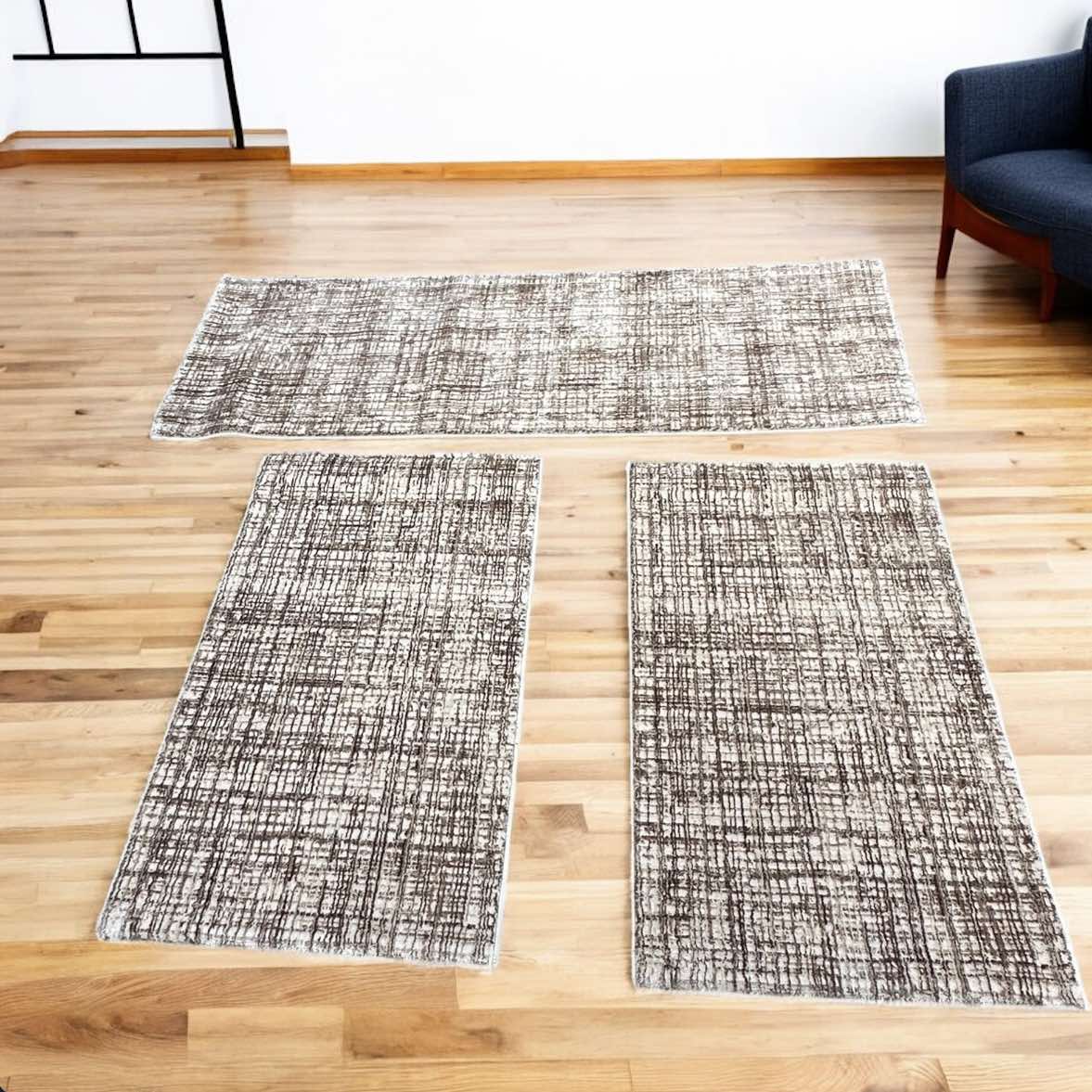 Σετ Ανάγλυφων Χαλιών Κρεβατοκάμαρας 3 Τεμαχίων – Μπεζ & Καφέ (120×66 / 120×66 / 180×66 cm)
