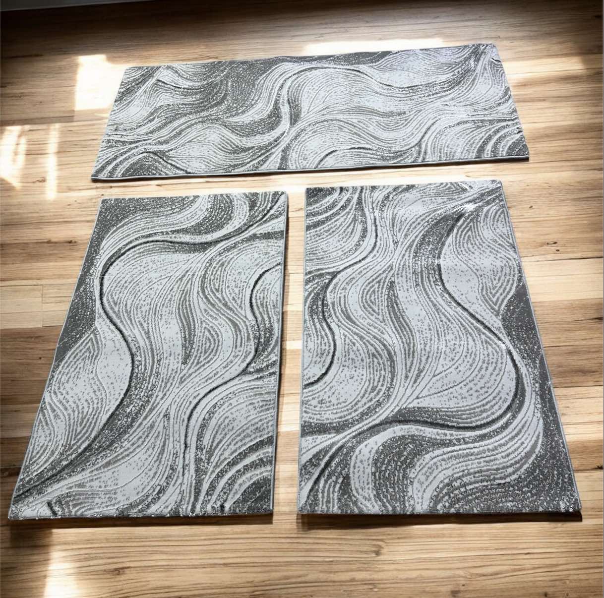 Σετ Χαλιών Κρεβατοκάμαρας 3 Τεμαχίων – Γκρι μπεζ Σχέδιο Κυμάτων
