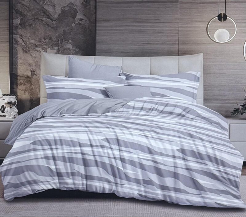 Αναβαθμίστε την αισθητική της κρεβατοκάμαράς σας με αυτό το σύγχρονο και κομψό σετ παπλωματοθήκης από το Ασημάκης home, σε αρμονικό συνδυασμό ανοιχτού γκρι, ελαφρύ γκρι, σκούρου γκρι και λευκού. Οι αποχρώσεις δημιουργούν ένα ισορροπημένο, μοντέρνο και διαχρονικό αποτέλεσμα που προσδίδει καθαρότητα, κομψότητα και ηρεμία στον χώρο.