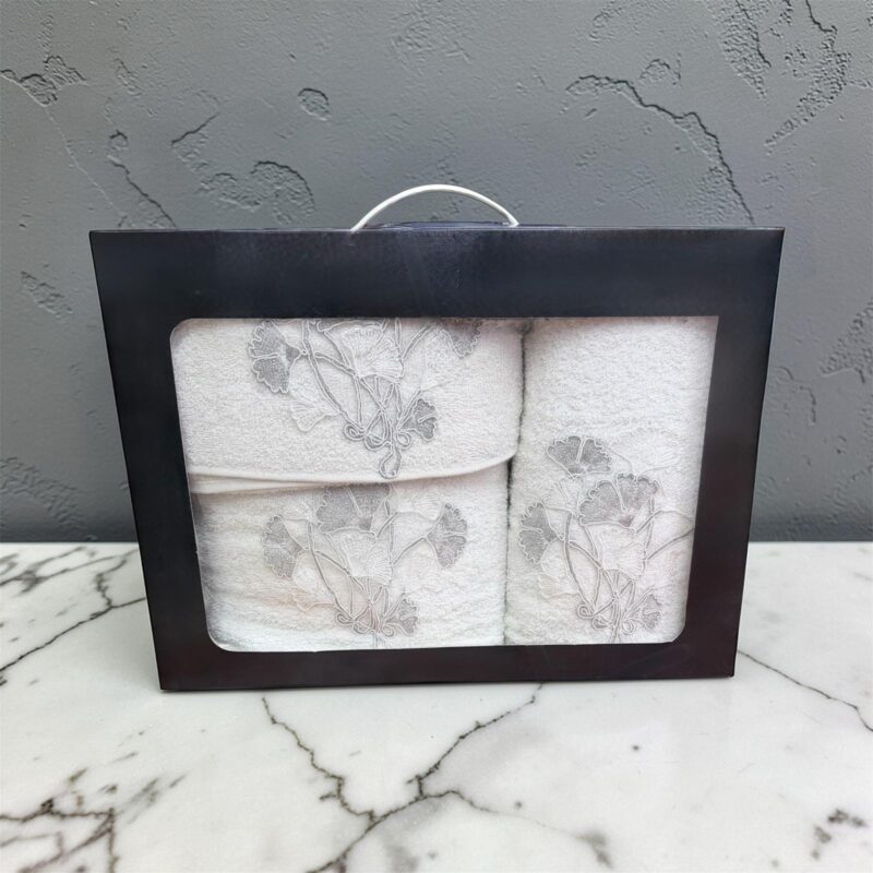 Σετ Πετσέτες 3 Τεμαχίων Λευκό με Κεντητό Floral Σχέδιο – Ασημάκης Home