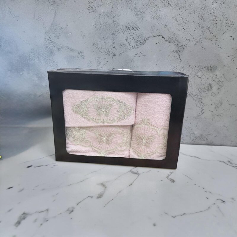 Σετ Πετσέτες 3 Τεμαχίων Ροζ με Κεντητό Σχέδιο Πεταλούδα – Ασημάκης Home