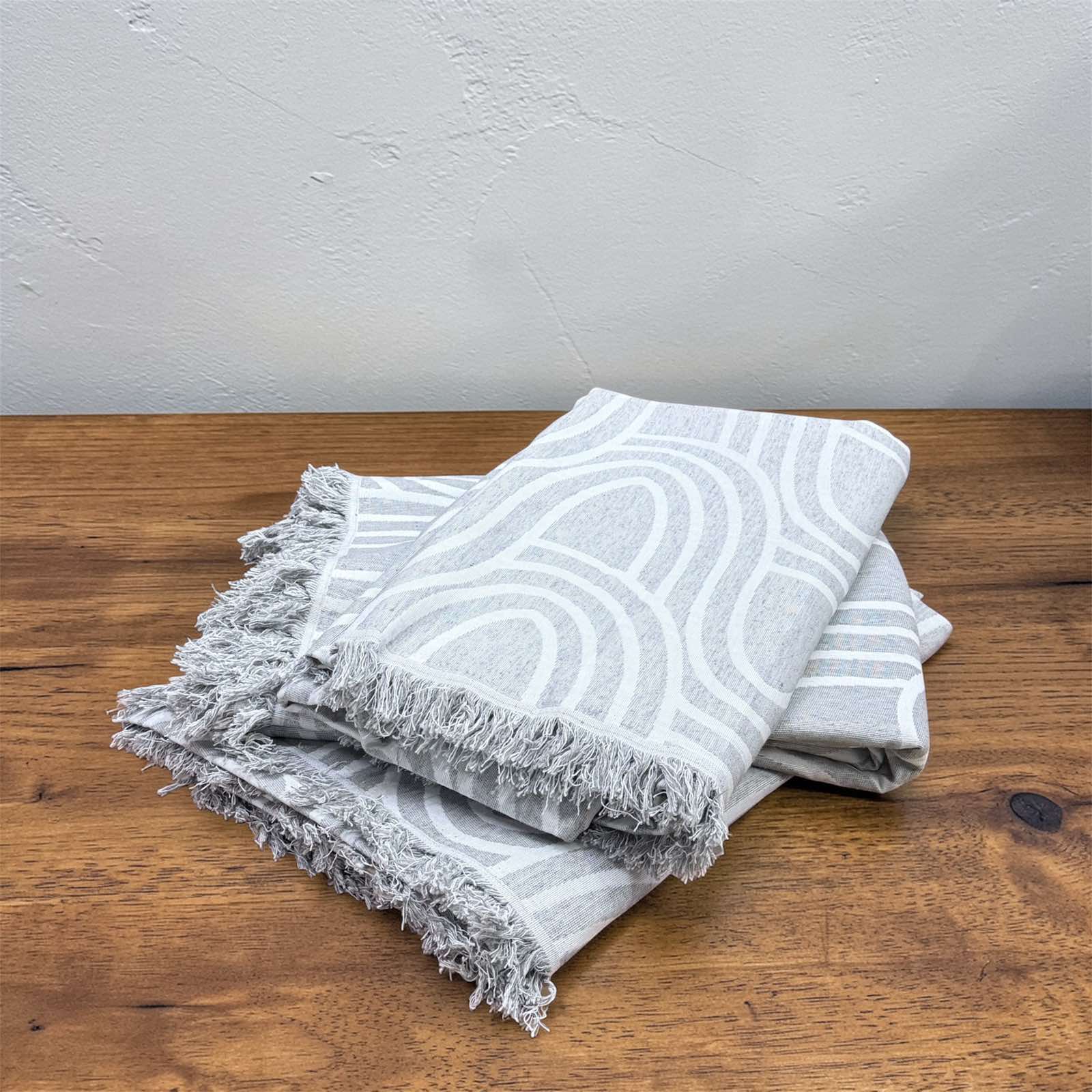 Τα ριχτάρια διαθέτουν γκρι κρόσσια στο τελείωμα, τα οποία προσθέτουν μια ιδιαίτερη διακοσμητική λεπτομέρεια, ενώ παράλληλα προστατεύουν τους καναπέδες και την πολυθρόνα σας από φθορές και καθημερινή χρήση.